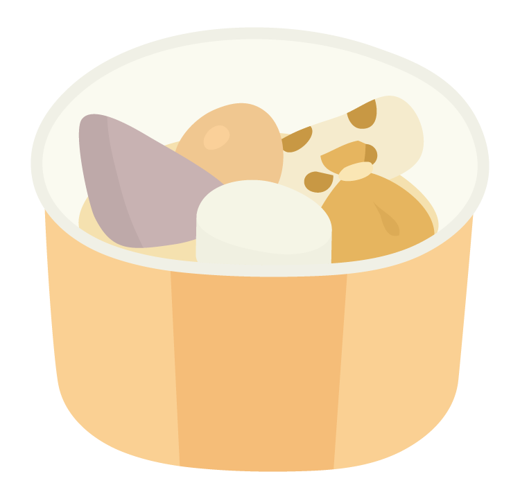 例えば大根、ゆで卵、さつま揚げ、つみれ、こんにゃくを一つずつ食べたとします。