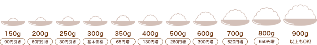 基本のライスの量は300gです。