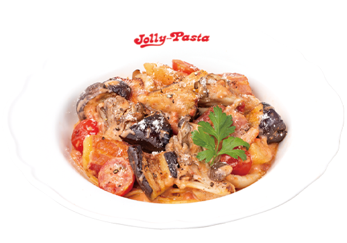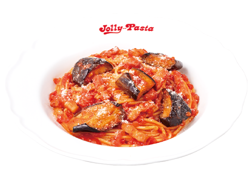 ジューシーな揚げ茄子がトマトソース・ベーコンと相性抜群。
