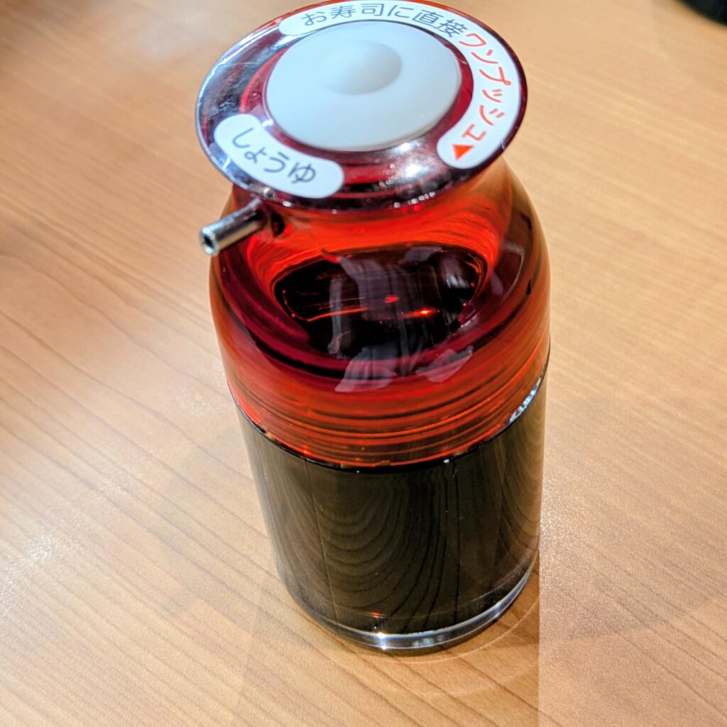 そんな時は、くら寿司のプッシュ式しょうゆボトルが大活躍します。