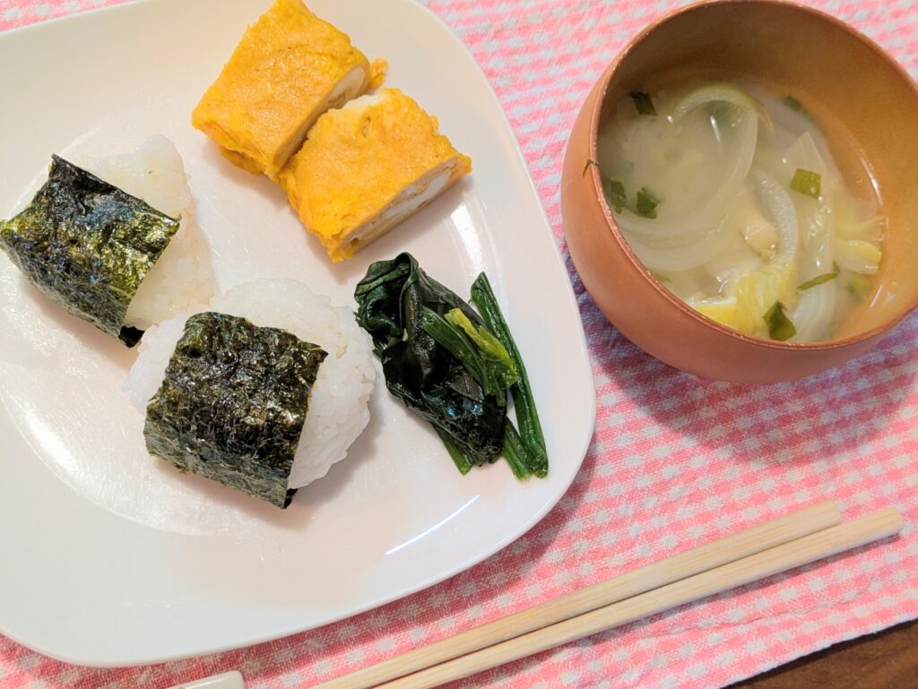 おにぎりは塩なし+焼きのりにすることで塩分はほぼゼロにしています。