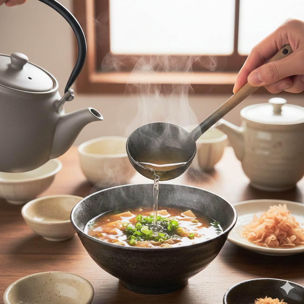 一番よく見かけるのがこれ、「みそ汁をお湯やお茶で薄めて飲む」というパターンです。