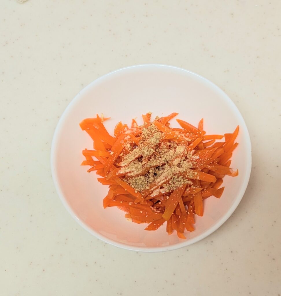 ① 人参は細切りに切りレンジで2~3分前後加熱します。